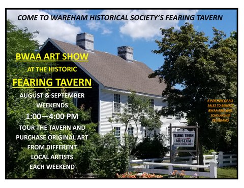 The Wareham Historical Society has partnered with the Bourne-Wareham Art Association to have an art gallery display at the Fearing Tavern every weekend during the months of August and September 2018.